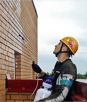 Чтобы убрать высолы с кирпичных стен, бетона, могут потребоваться услуги альпинистов (исключение составляют только одно-двухэтажные строения). При выполнении расчета стоимости учитывается высотность здания, особенности его архитектуры, наличие сложных для подъема участков.